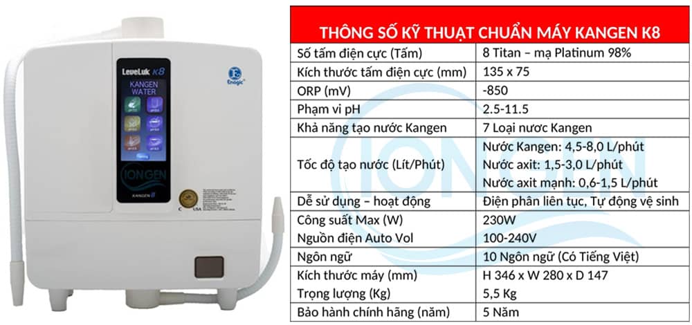Máy Lọc Nước Ion Kiềm Kangen K8 Chính Hãng – Bản Mỹ