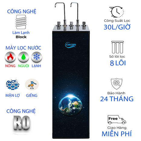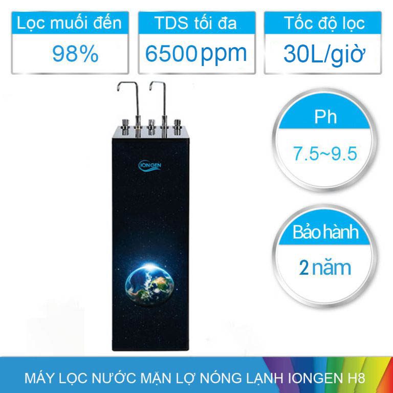 Máy lọc nước mặn lợ, giếng khoan, nước nhiễm canxi, nhiễm phèn, nước thủy cục Nóng Lạnh Nguội…uống trực tiếp tại vòi IONGEN H8