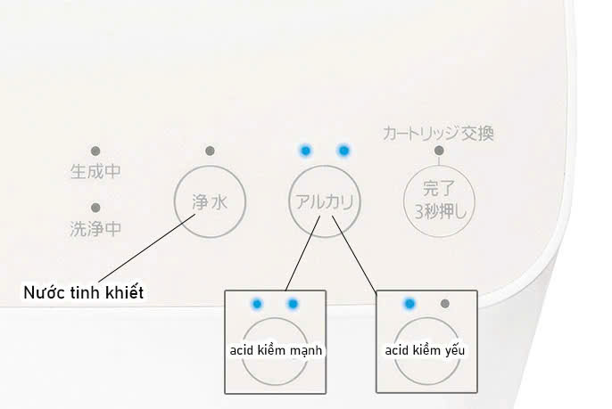 | Chế độ điện phân | Kiềm: 2 chế độ Tinh khiết: 1 |