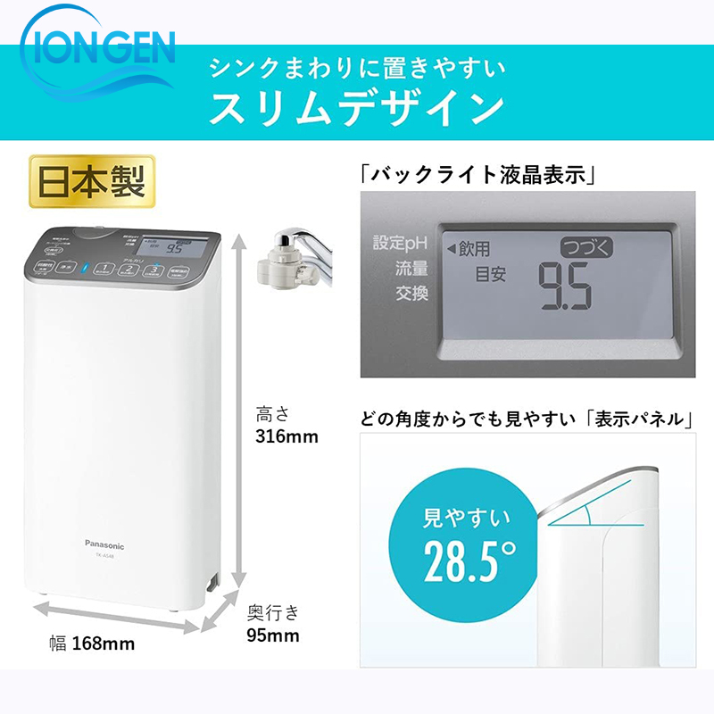 Máy lọc nước điện giải ion kiềm Panasonic TK-AS48 Nhật Bản là model sản xuất năm 2022 được trang bị 3 tầm điện phân tạo ra 5 loại nước khác nhau, kích thước rộng 16,8 cm x sâu 9,5 cm. Kích thước nhỏ gọn cho phép nó được lắp đặt gọn gàng trong không gian bên cạnh vòi. Thật dễ dàng để đảm bảo không gian trong nhà bếp và dễ dàng để làm việc.