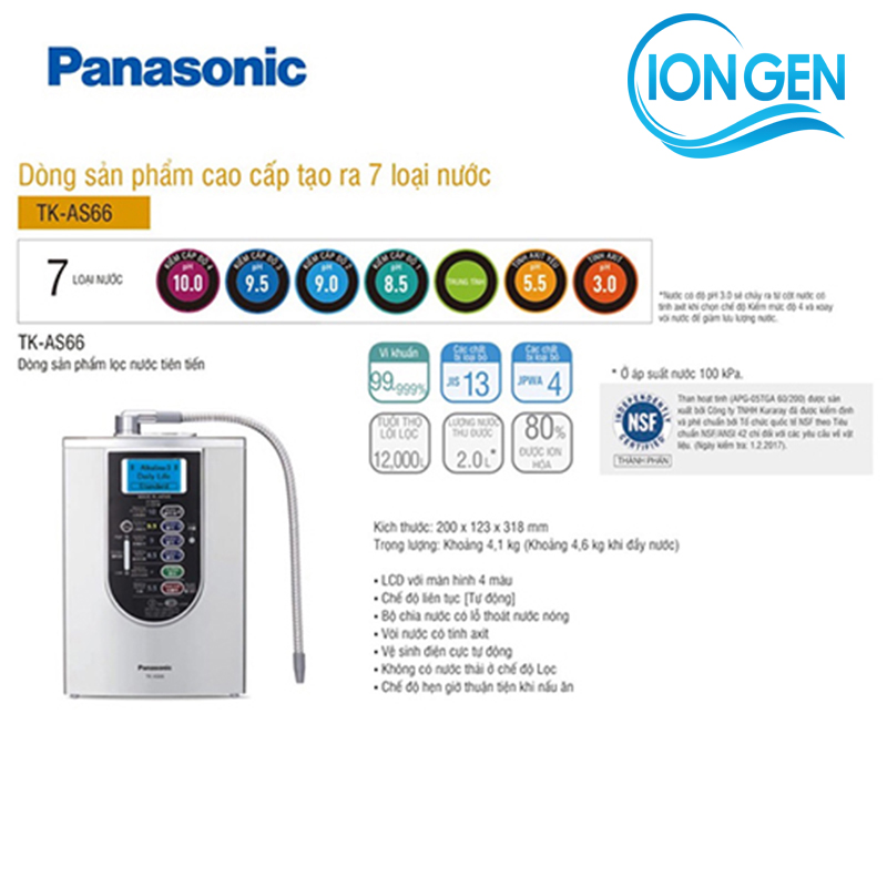 Máy lọc nước điện giải Ion Kiềm Panasonic TK-AS66 – Nhật Bản