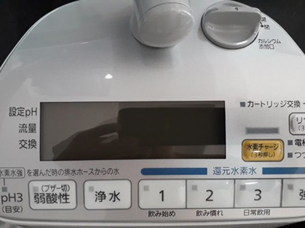 Màn hình tinh thể lỏng của máy hiển thị màu nền 4 màu; với mức “hydrogen concentration” được hiển thị dưới dạng một giá trị số. Màu sắc sẽ hay đổi theo chất lượng nước;từ màu hồng – màu xanh lá – màu xanh dương và màu cam đậm; tương đương với các chế độ nước axit – nước trung tính – nước ion kiềm – nước ion kiềm mạnh.